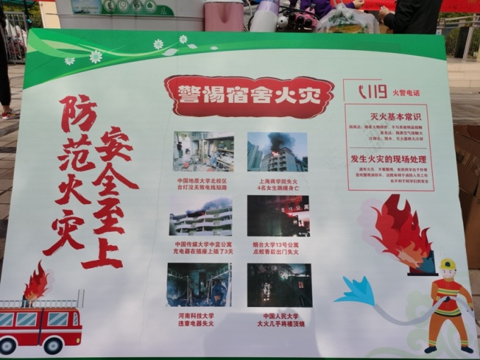 消防安全工作是学校安全工作的重要内容,是事关师生生命安全和国家财产安全的头等大事,后勤处领导对此更是非常重视。在此次消防安全月中,为普及消防安全等相关知识,增强学生的安全防护意识,高度物业公司在2019年11月6日在学生公寓春华苑(C区)举办了以“关注消防、珍爱生命、共创和谐校园”为主题的安全宣传活动,引起了师生的高度关注,带来较好的反响。